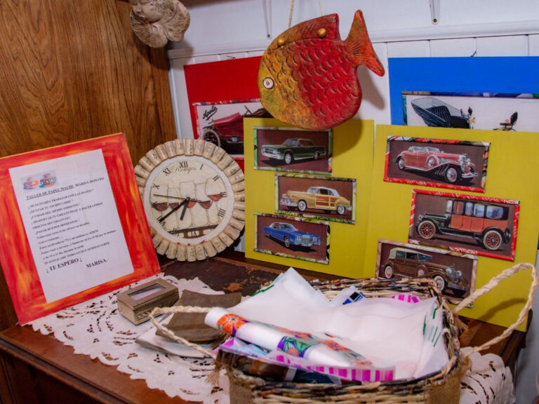 Un espacio mágico, donde su dueña y creadora Marisa Donato, realiza talleres de artesanías al mismo tiempo que atiende en su local de venta al público. El comercio abrió hace tres años, en lo que supo ser el living de su casa. Allí puede encontrarse una gran variedad artesanías: elementos de decoración, colgantes con formas de pájaros, corazones, peces y campanas, canastos hechos con papel de revista, cajones, cuadros intervenidos, vajilla de cerámica pintada con motivos coloridos y alegres.